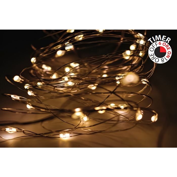 80 NANOLED BIANCO CALDO LUCE FISSA A BATTERIA 3.95+0.15MT