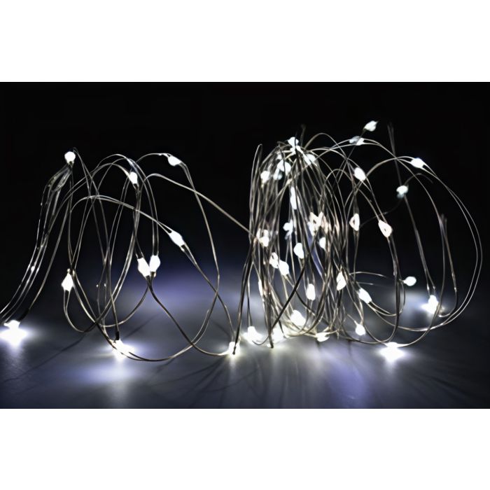 80 NANOLED BIANCO GHIACCIO LUCE FISSA A BATTERIA 3.95+0.15MT