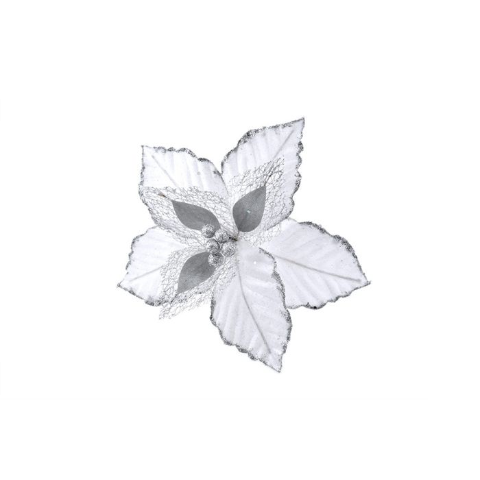 FIORE CON GLITTER BIANCO E ARGENTO 35X30CM