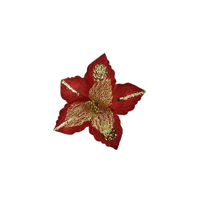 FIORE CON GLITTER ORO E ROSSO 35X29CM