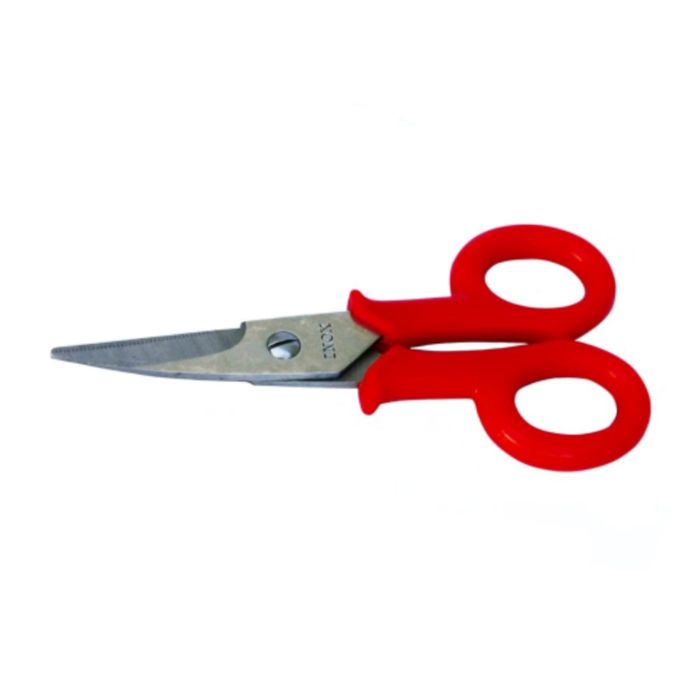 Forbice per elettricista con lame curve in acciaio inox da 140 mm, dotata di micro‑dentatura per una presa ottimale e tagli netti su cavi e materiali elettrici; il profilo curvo facilita il lavoro in spazi ristretti, mentre l’impugnatura isolata e antiscivolo assicura comfort e sicurezza durante l’utilizzo, rendendola ideale per interventi professionali e di manutenzione.