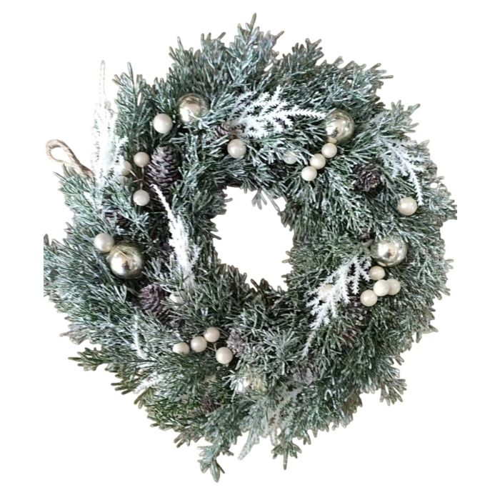 - Impreziosita da bacche bianche, pigne e sfere argento - Perfetta da appendere alla porta di casa durante le feste natalizie. |