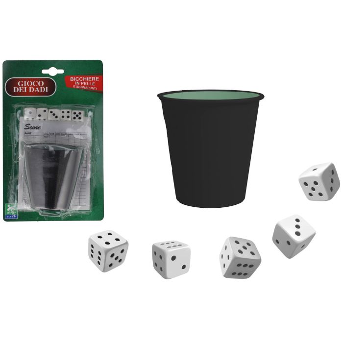 GIOCO DADI 5PZ CON BICCHIERE PELLE E SEGNAPUNTI