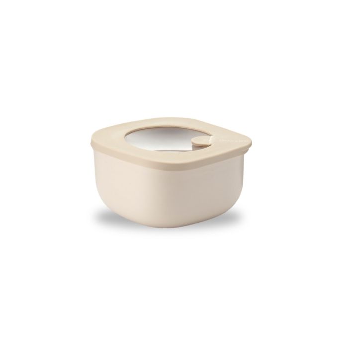 Contenitori ermetici, tondi, quadrati e rettangolari, ideali per conservare in freezer o frigo, riscaldare in microonde con il coperchio inserito grazie all'innovativa valvola di sfiato, trasportare e servire cibo in casa o fuori casa. Impilabili e salvaspazio. La collezione STORE & MORE BIO è realizzata in Italia in materiale Bio-Based.