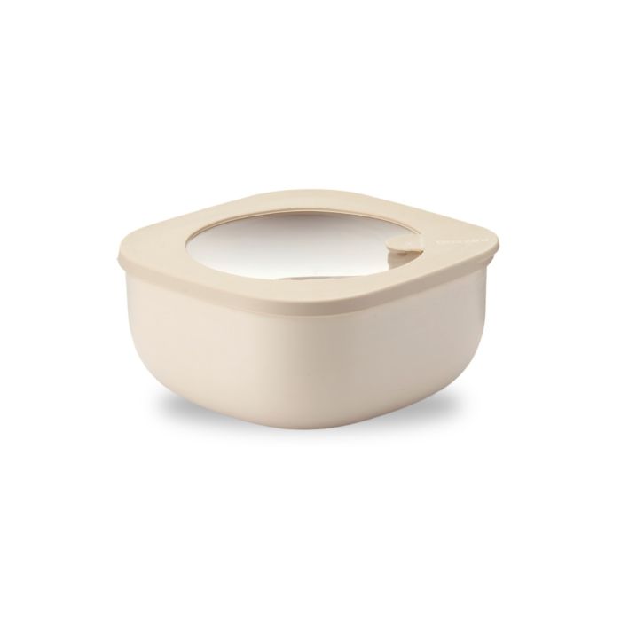 Contenitori ermetici, tondi, quadrati e rettangolari, ideali per conservare in freezer o frigo, riscaldare in microonde con il coperchio inserito grazie all'innovativa valvola di sfiato, trasportare e servire cibo in casa o fuori casa. Impilabili e salvaspazio. La collezione STORE & MORE BIO è realizzata in Italia in materiale Bio-Based.