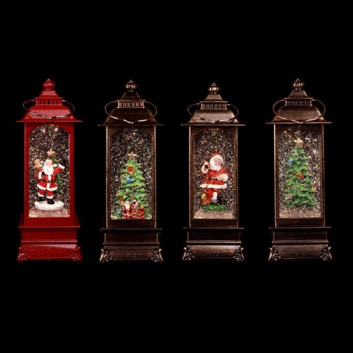LANTERNA CON ACQUA E NEVE BABBO/ALBERO 8X8CM H 30CM USB+BATTERIA ASS.