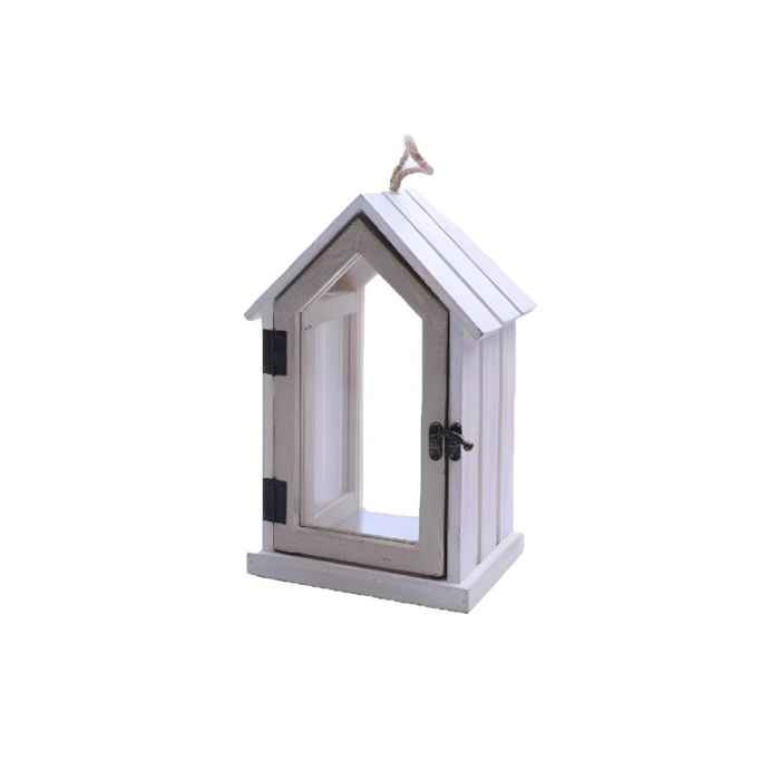 LANTERNA IN LEGNO PICCOLA CON BORDO GRIGIO 18.5X15.5CM H 30CM