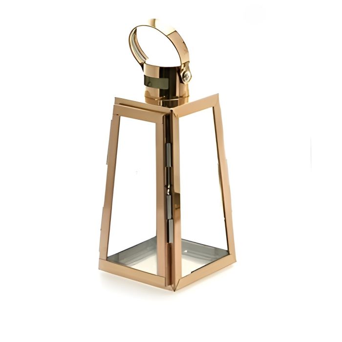 LANTERNA IN METALLO CON FORMA SVASATA COLOR RAME H 20.5CM