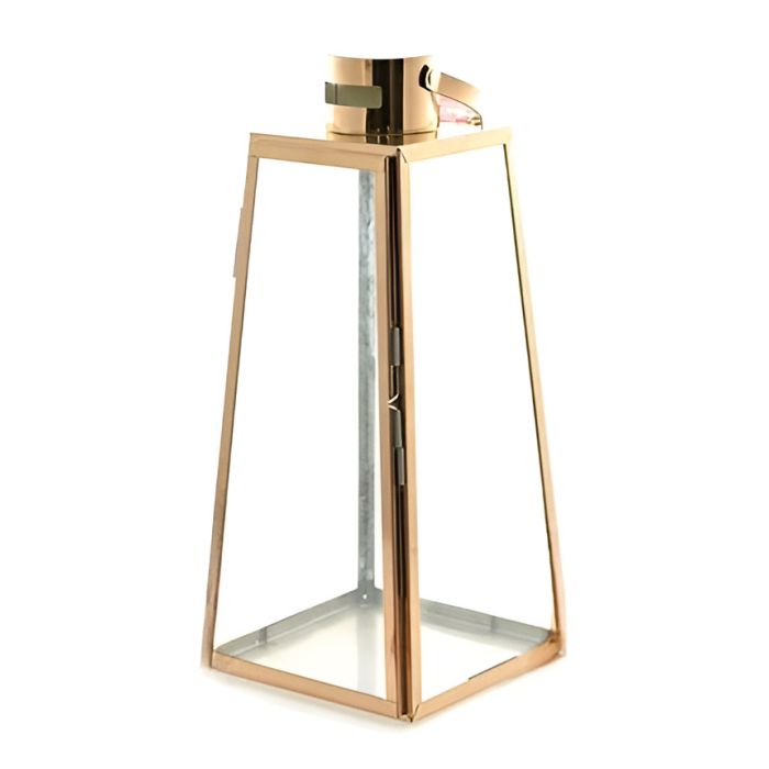 LANTERNA IN METALLO CON FORMA SVASATA COLOR RAME H 38CM