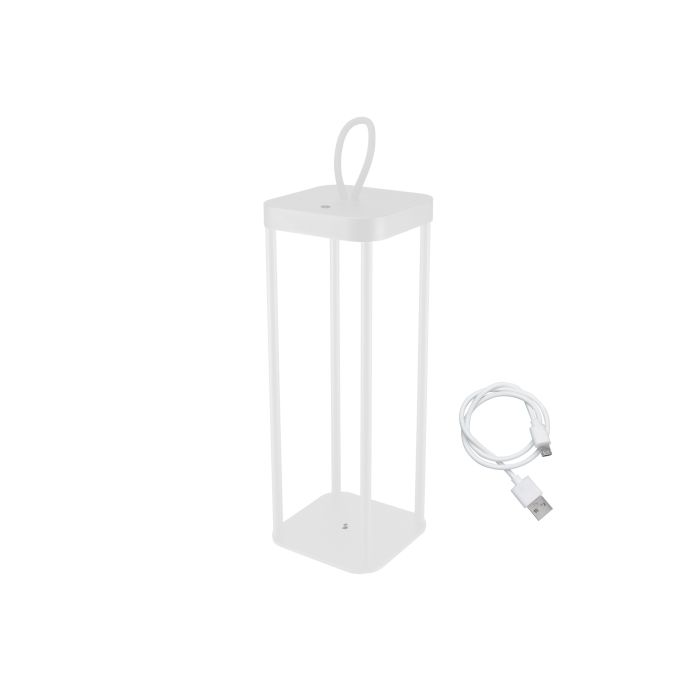 Lanterna ricaricabile in metallo adatta ad ambienti interni ed esterni con pulsante d'accensione sulla parte superiore. L’intensità della luce è regolabile con doppio click sul tasto di accensione, è possibile scegliere tra due diversi colori di luce calda. Comodo gancio in silicone che rende la lanterna facile da trasportare. Può essere appoggiata al centro della tua tavola o in zona living. Cavo di ricarica USB incluso nella confezione.