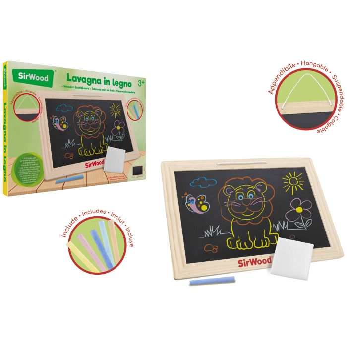 LAVAGNA IN LEGNO CON GESSETTI COLORATI/SPUGNETTA