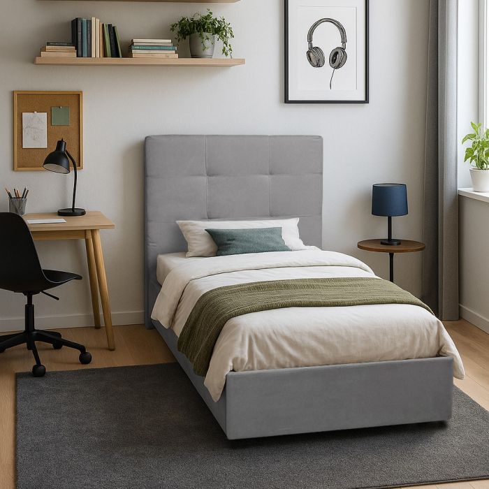 LETTO SINGOLO CON CONTENITORE MOD. NAPOLI IN TESSUTO GRIGIO CHIARO