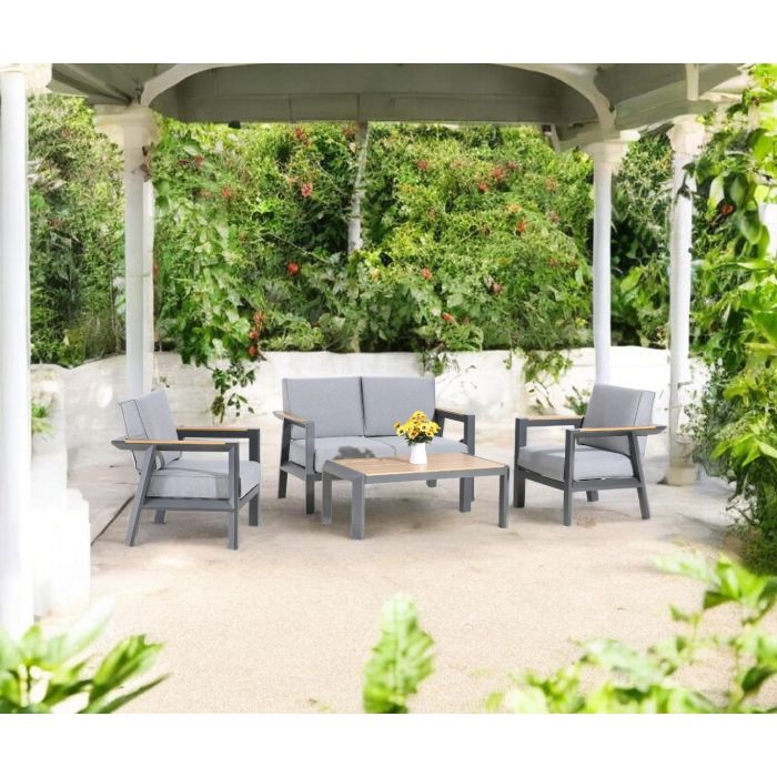 SALOTTO DA ESTERNO IN ALLUMINIO ANTRACITE E POLYWOOD