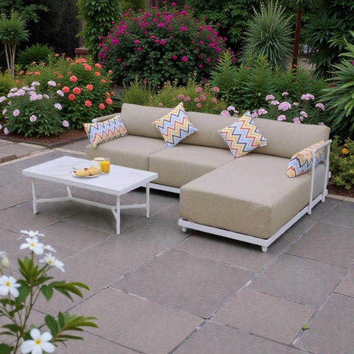 SALOTTO DA ESTERNO CON CHAISE LONGUE DX + TAVOLINO METALLO BIANCO