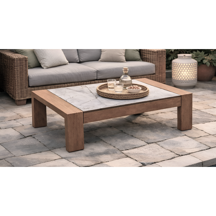 TAVOLINO DA ESTERNO MOD. SKY CM 110X60 H.40 ALLUMINIO EFFETTO LEGNO NATURALE