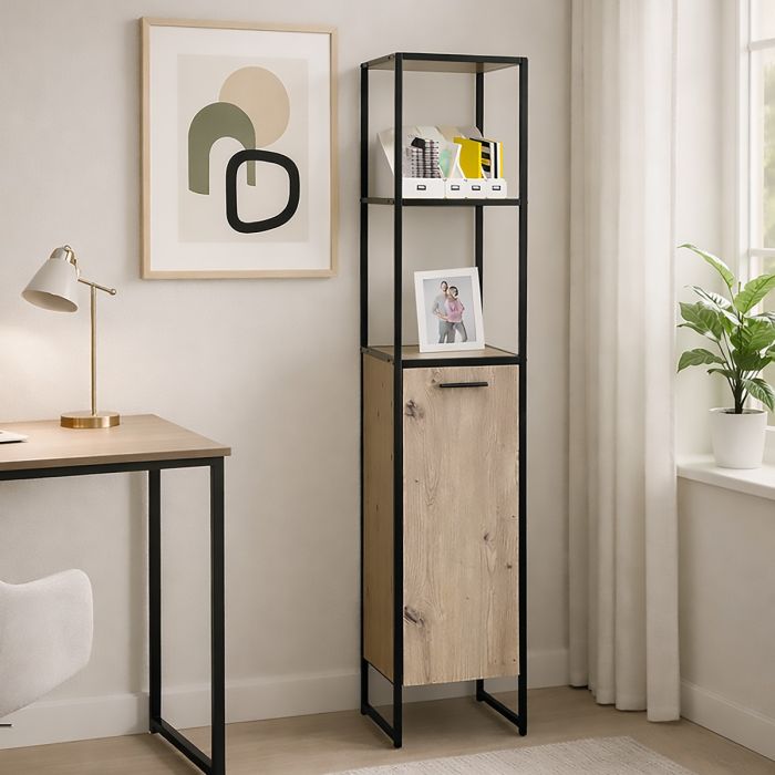 LIBRERIA IN LAMINATO E METALLO CM 32X33 H. 160 ROVERE NODATO E NERO