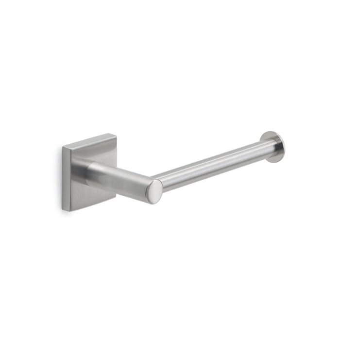 Portarotolo linea FUJI in acciaio inox AISI 304, colore spazzolato, dimensioni 16,5×7,1 h. 4,7cm; fissaggio a muro con viti incluse o con colla venduta separatamente, carico testato fino a 7kg; design compatto e resistente pensato per garantire durata, stabilità e un aspetto elegante e minimale nel bagno.