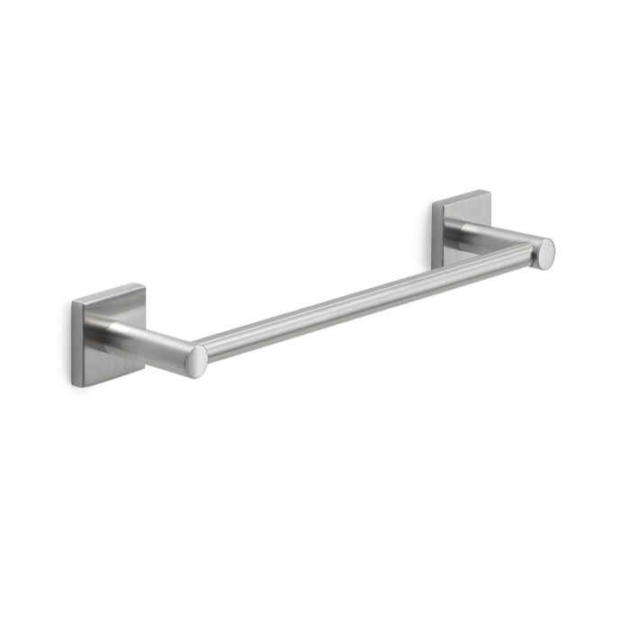 Portaasciugamani linea FUJI in acciaio inox AISI 304, Cromall, colore spazzolato, dimensioni 34,1×6,9 h. 4,7cm; lunghezza modificabile per adattarsi a diverse esigenze, fissaggio a muro con viti incluse o con colla venduta separatamente, carico testato fino a 7kg; design essenziale, robusto e resistente alla corrosione, perfetto per un bagno funzionale dal look minimale.