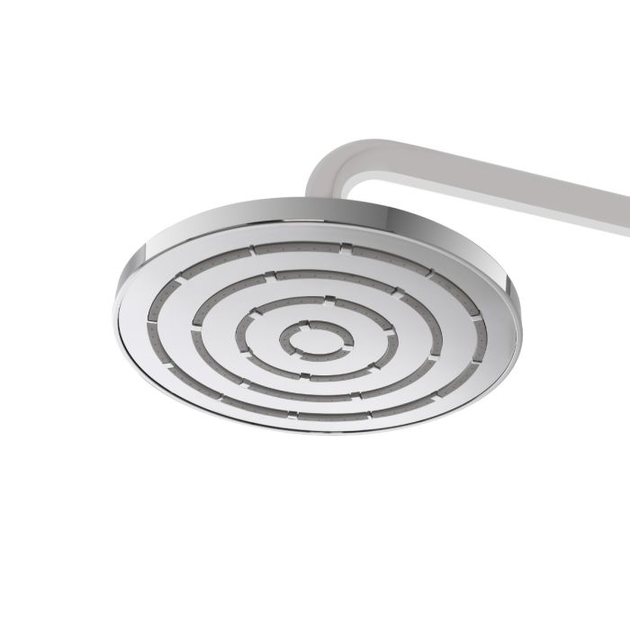 Soffione doccia tondo cromato linea Hidra Style, diametro 20 cm, in ABS con finitura lucida, dotato di ugelli anticalcare per una facile manutenzione. Misura d20 x H1,5 cm, attacco standard G1/2'' per installazione immediata e rotazione a 360° per orientare il getto con la massima praticità.