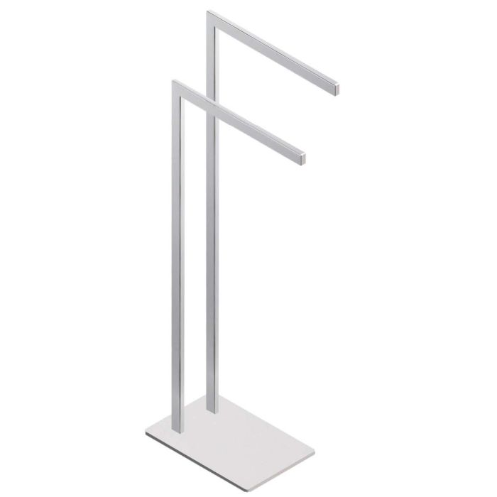 Piantana porta asciugamani linea STELVIO in acciaio colore cromato lucido, dotata di 2 braccia fisse, dimensioni 16×24 h. 80cm, con base rettangolare per maggiore stabilità; design compatto e salvaspazio, struttura robusta e facile da pulire, ideale per bagni moderni e funzionali; prodotto fornito smontato con istruzioni per un rapido assemblaggio.