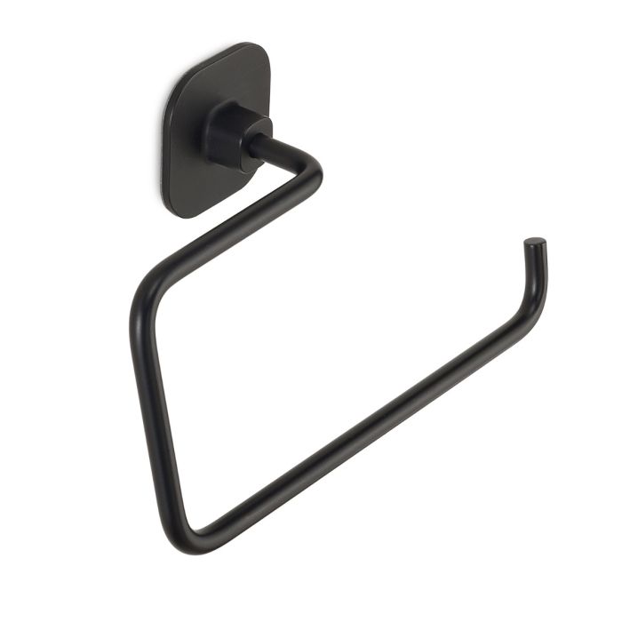 Portasalviette ad anello linea TEIDE realizzato in acciaio inox e Cromall colore nero Matt, dimensioni 20 × 7,2 × h 10 cm, fissabile a muro con viti (incluse) o con biadesivo e carico testato fino a 3 kg; dal design essenziale e contemporaneo, offre una finitura opaca resistente, installazione versatile e solida e rappresenta la soluzione ideale per ottimizzare lo spazio e completare il bagno con un tocco moderno ed elegante.