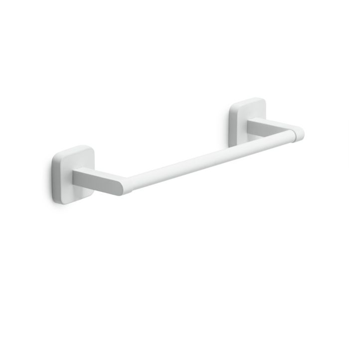 Portasalviette da 30cm linea TONGA realizzato in acciaio inox e Cromall colore bianco Matt, dimensioni 30×6,9 h. 4,7cm, fissabile a muro con viti (incluse) o con biadesivo 3M già presente sul retro; dal design minimal e contemporaneo garantisce robustezza, installazione rapida e discreta e completa il bagno con un tocco elegante e luminoso.
