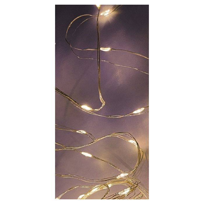 | Note | - Lunghezza catena luminosa: 1mt; - Lunghezza cavo di alimentazione: 0.1mt; - Filo argentato; - Distanza lampadine: 5cm; - Funziona a batteria (2xAA 1.5V non incluse); - Per uso interno |