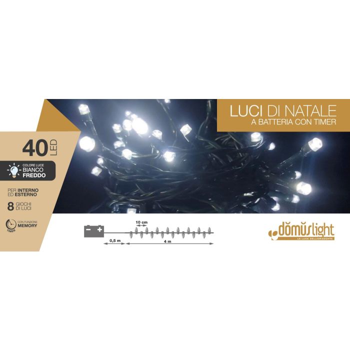 LUCI DI NATALE 40 LED BIANCO FREDDO A BATTERIA 4+0.5MT