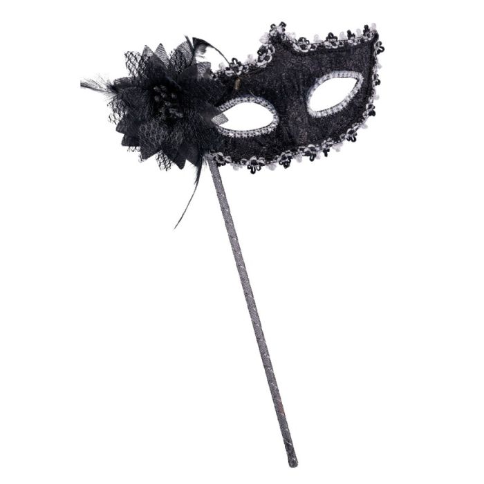MASCHERA NERA IN TESSUTO CON FIORE E BASTONCINO