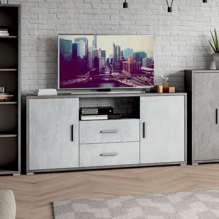 CREDENZA MOD. DOUBLE CM 174X41 H. 84 CEMENTO E OSSIDO BIANCO