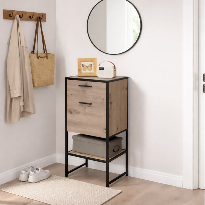 MOBILE CM 40X33 H. 91 ROVERE NODATO E METALLO NERO