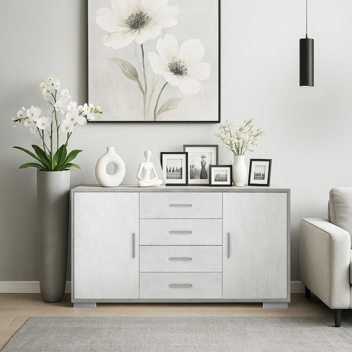 MOBILE MOD. DOUBLE CM 174X41 H. 84 CEMENTO E OSSIDO BIANCO