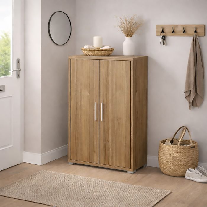 - 2 Ripiani interni regolabili - Piedi e maniglie in metallo grigio satinato |