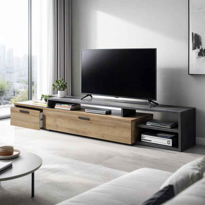 PORTA TV PANCHETTA MOD. VITTORIA CM 270.5X45 H. 44.9 NERO PORTLAND E RIVIERA OAK