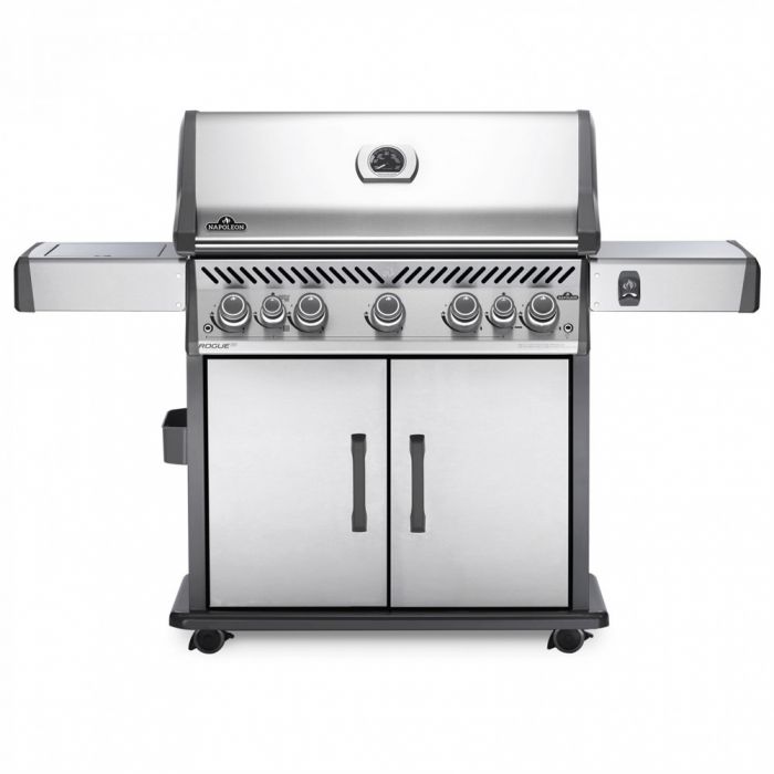 Il barbecue a gas propano Napoleon Rogue® SE 625 in acciaio inox con bruciatore posteriore e bruciatore laterale a infrarossi è un barbecue resistente in acciaio inox. Dotato di cinque bruciatori principali (ognuno da 4.15Kw), un bruciatore posteriore per girarrosto e un coperchio alto, questo barbecue ha tutto ciò che serve per creare piatti da gourmet. Scotta le bistecche in stile ristorante sulla stazione di scottatura integrata, mentre i generosi ripiani laterali offrono molto spazio per la preparazione. Acceso dal sistema di accensione istantanea JETFIRE™ che accende i bruciatori principali con un getto di fiamma facile e costante. La SIZZLE ZONE™ a infrarossi è un bruciatore che crea energia radiante a infrarossi, utilizzando bruciatori in ceramica con migliaia di fori di fiamma uniformemente distanziati. L'energia della fiamma viene assorbita dalla ceramica, che si illumina di rosso e si riscalda in pochi istanti fino a oltre 800 °C (1500 °F). Il calore intenso brucia immediatamente il cibo per ottenere segni di scottatura saporiti. Il risultato è un cibo succulento in meno della metà del tempo di cottura.