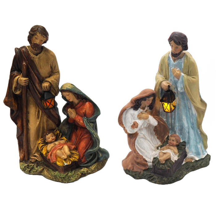NATIVITA' MONOBLOCCO CON LANTERNA E LUCE 12,8X7,5 H. 18,3CM ASS.