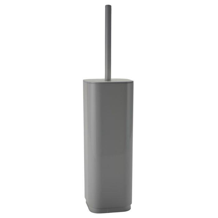 Porta scopino linea SEVENTY realizzato in resine termoplastiche colore grigio, dimensioni 9×9 h. 38.8 cm, dotato di ciuffo in setole nere e progettato per garantire stabilità e facilità di pulizia; compatto, resistente all’umidità e dal design discreto, offre una soluzione igienica e pratica per riporre lo scopino in bagno, 100% MADE IN ITALY.