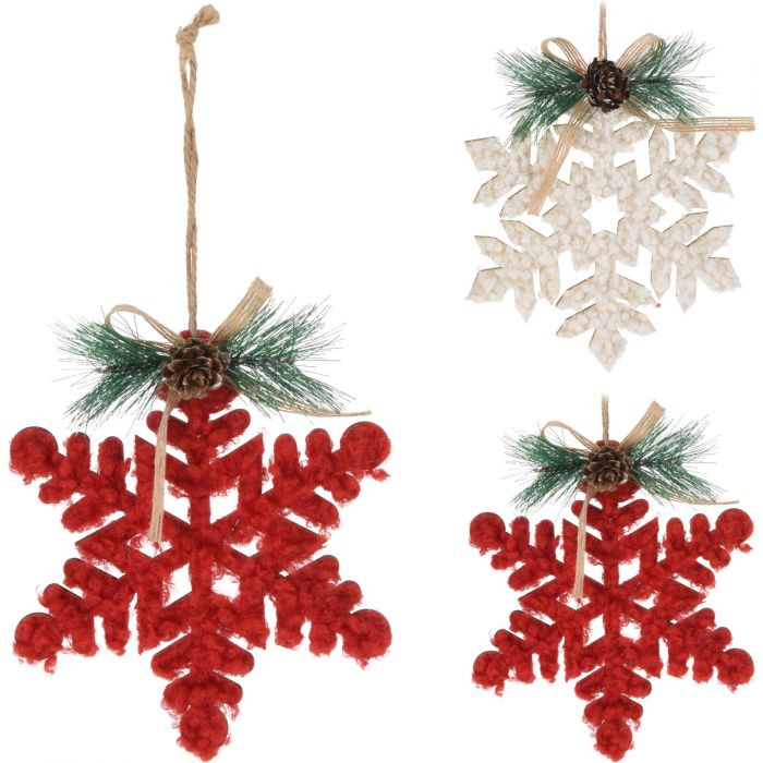 PENDENTE A FORMA DI FIOCCO DI NEVE EFFETTO TEDDY H. 18CM ASSORTITO