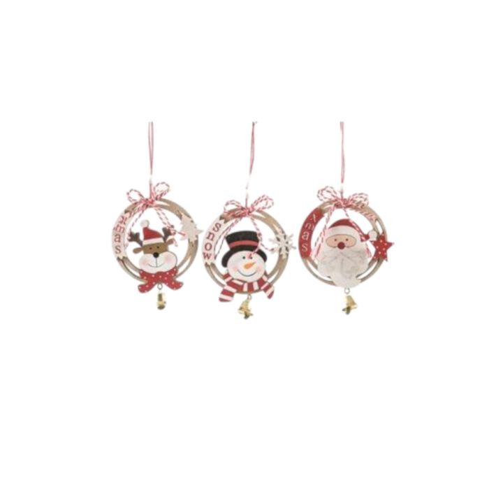Note | - Con laccetto rosso per poterlo appendere; - Con fiocco e campanellina; - 3 soggetti assortiti: renna, pupazzo di Natale e Babbo Natale CHIEDERE DISPONIBILITÀ DEL SOGGETTO PRIMA DELL'ACQUISTO ALTRIMENTI VERRÀ SPEDITO UN SOGGETTO CASUALE |
