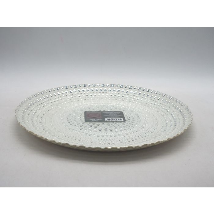 PIATTO BIANCO OPACO CON DECORI CHAMPAGNE DIAM. 28CM IN VETRO