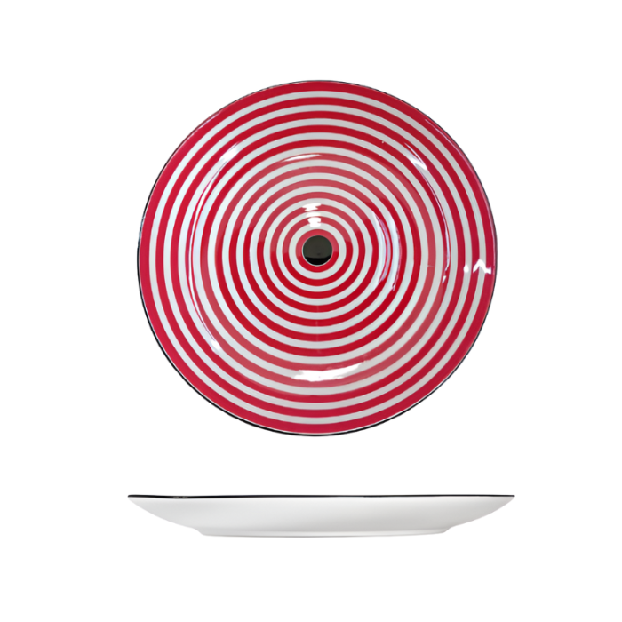 - Con decoro cerchi concentrici rossi/bianchi - Lavabili in lavastoviglie - Utilizzabili anche nel microonde |