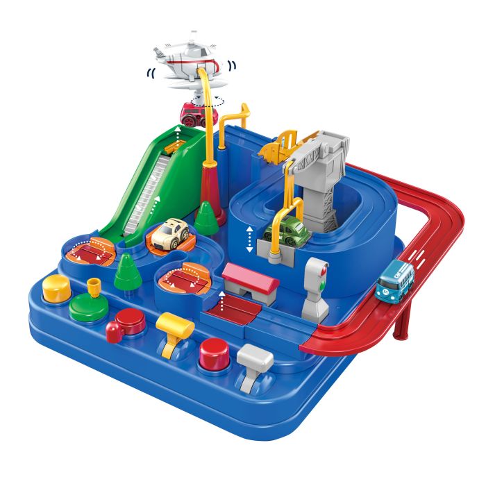 Note | - 2 auto incluse, 9 livelli, 6 Tasti movimento; - Scivolo a gravità, ponte elevatoio ed elicottero; - Movimenti meccanici: non servono batterie; - Pista auto Montessori: coordinazione occhio-mano, abilità motorie eccellenti, causa ed effetto; - Età: 3+ |