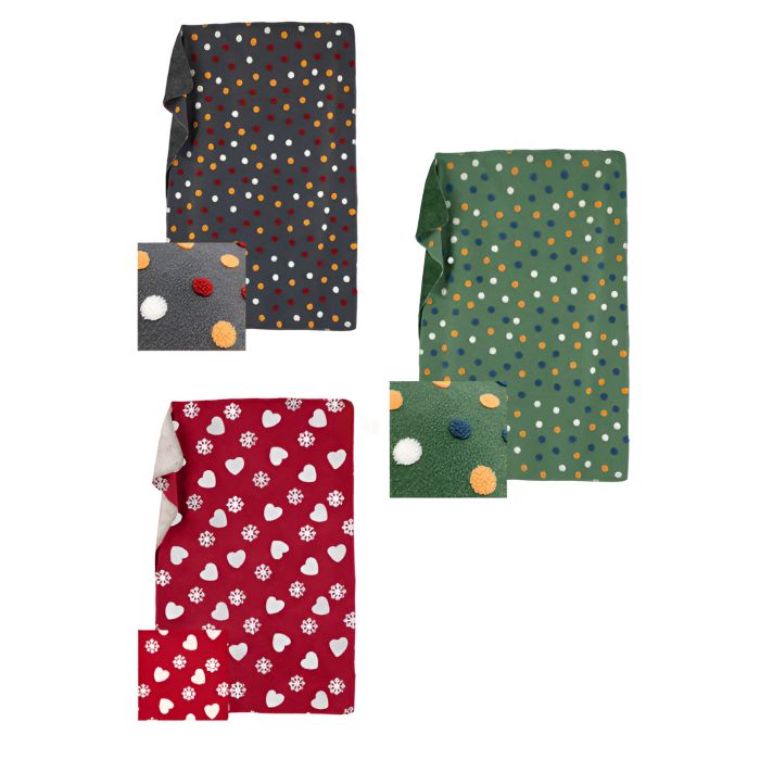 | Note | - Plaid effetto lana con decoro pois multicolore/cuori e fiocchi di neve