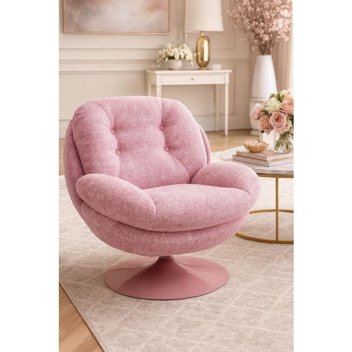 POLTRONA GIREVOLE MOD. COSY PINK IN METALLO E TESSUTO ROSA
