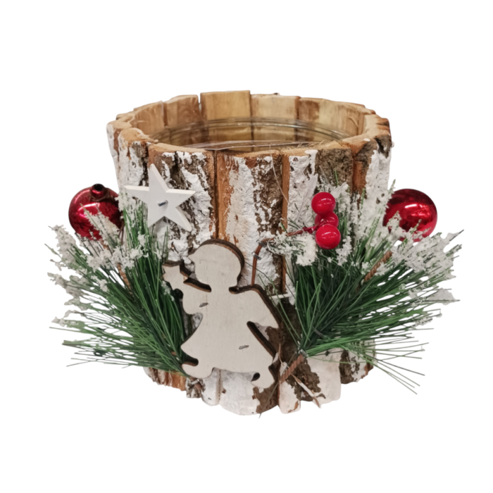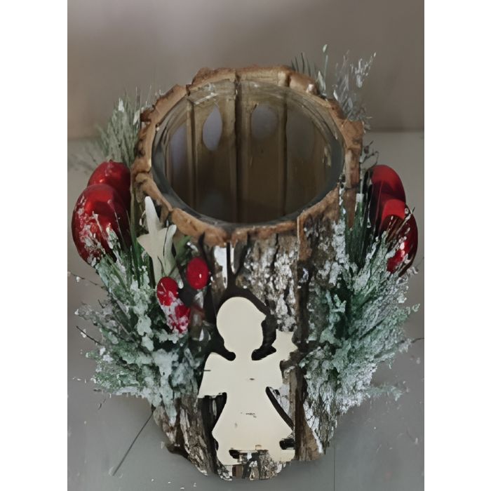 PORTA CANDELA 1 VETRO IN LEGNO CON ANGELI/BACCHE 21X21CM