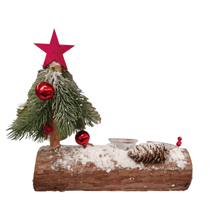 | Note | - Porta candela in legno a forma di tronco con 2 vetri