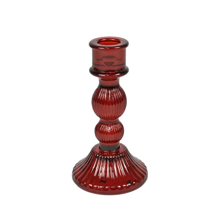 PORTA CANDELA DI VETRO ROSSO 8X20CM