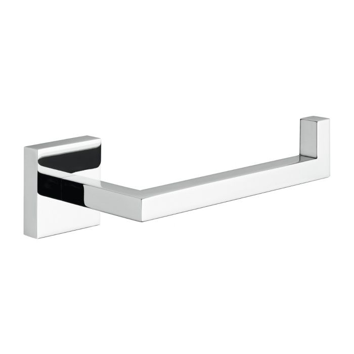 Porta rotolo linea ELBA in ottone e alluminio, colore cromato, dimensioni 16,2×6,5 h. 4,5cm (L×P×H); fissaggio a muro con viti o con colla (venduta separatamente) — con la colla il fissaggio è stato testato per un carico massimo di 7 kg; design compatto e resistente con finitura lucida, facile da installare e da pulire, ideale per completare il bagno con stile e funzionalità.