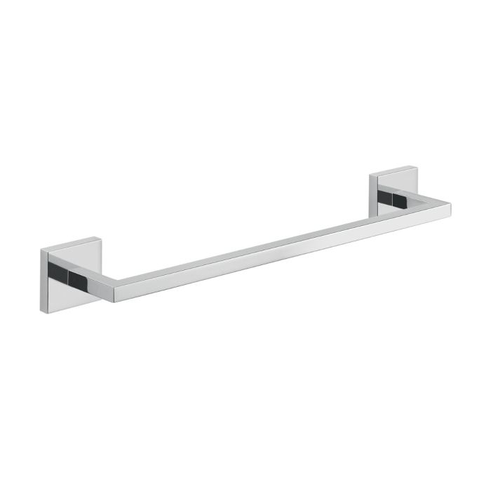 Porta salviette linea ELBA in ottone e alluminio, colore cromato, dimensioni 34,4×6,5 h. 4,4cm (L×P×H); fissaggio a muro con viti o con colla (venduta separatamente) — con la colla il fissaggio è stato testato per un carico massimo di 7 kg; design lungo e discreto, struttura robusta con superficie lucida resistente e facile da pulire, ideale per completare il bagno con un tocco elegante e funzionale.