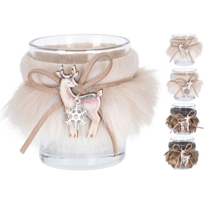 PORTA TEALIGHT VETRO/PELO 6CM